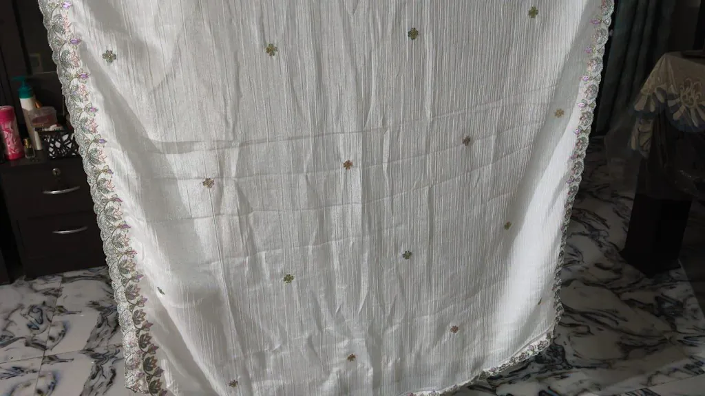 Duppta : Crush Silk Fabric with Sequence Embroidery Lace Border ( 2.25 Metre)