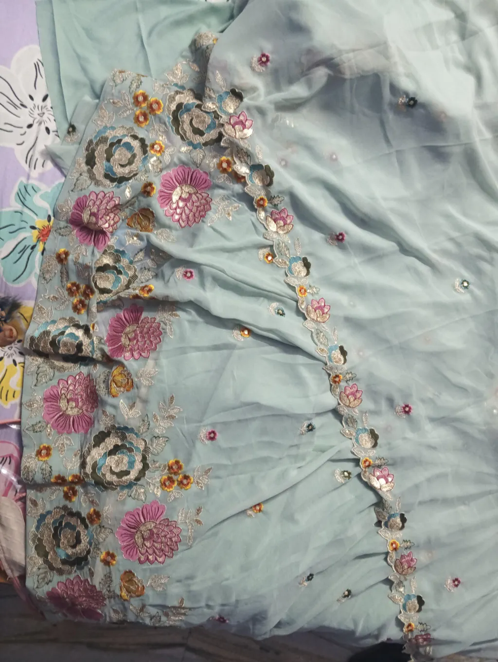 choli : Faux Georgette Fabric With Sequence Embroidery Thread Work (unstitch 1Mtr)
