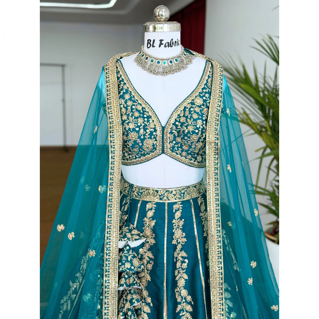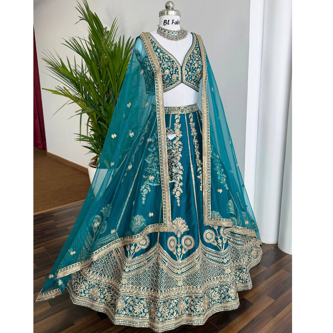 Firozi color Designer Sequence Embroidery work Lehenga choli for Wedding Function BL1578