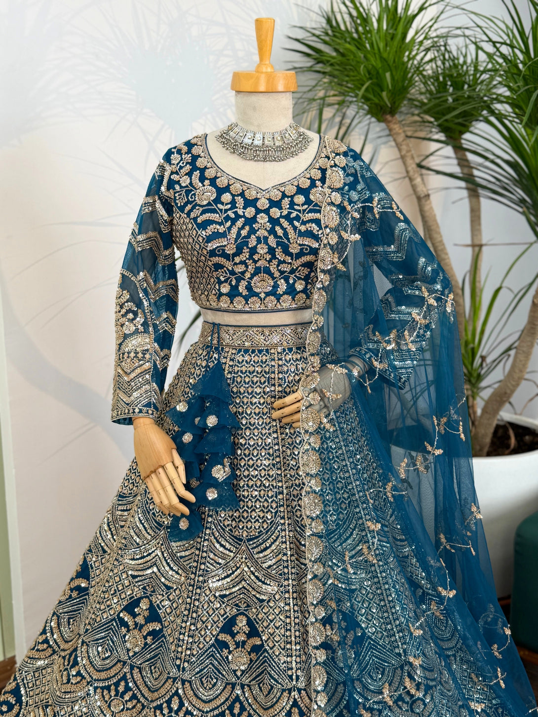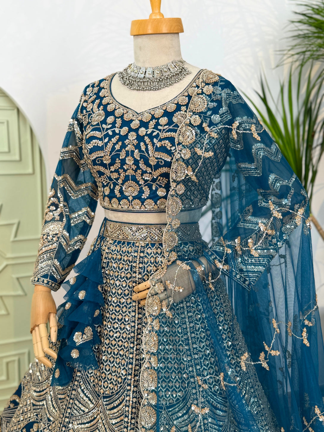 Firozi color Hand Embroidery work Designer Lehenga Choli for Wedding Function BL1612