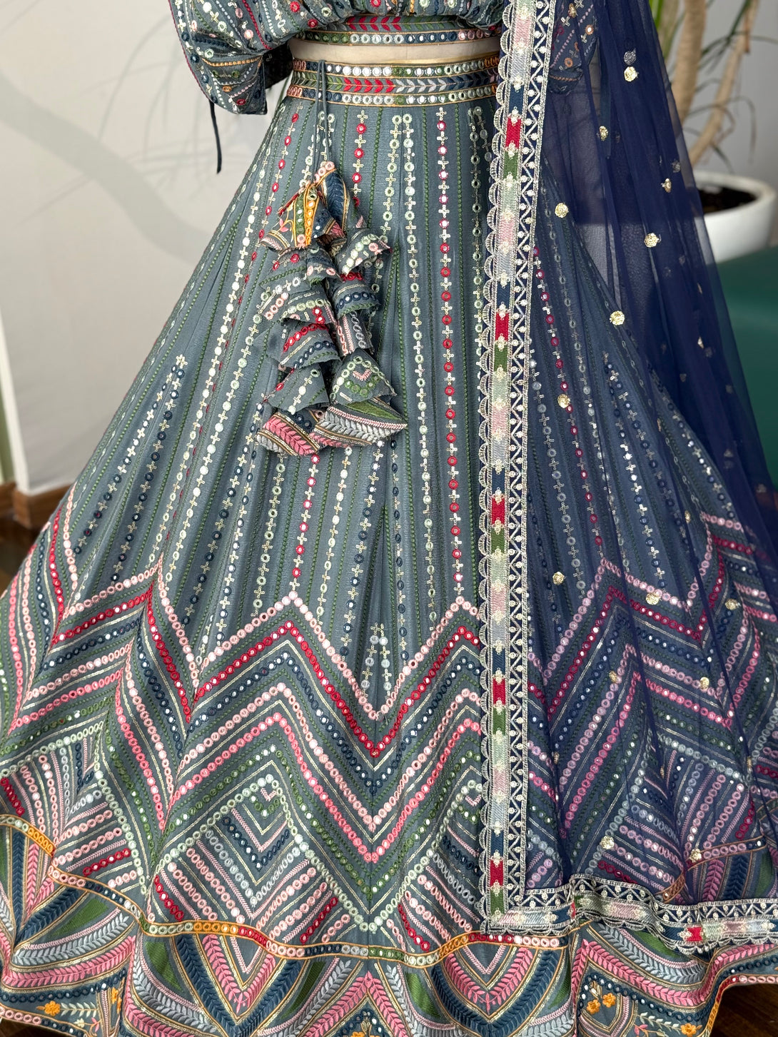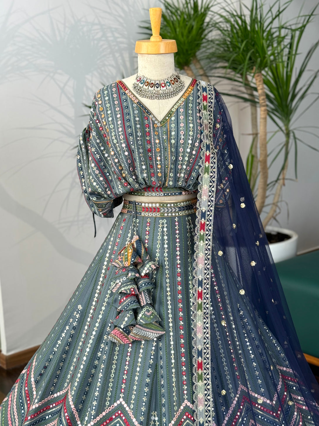 Grey color Sequence Embroidery work Designer Lehenga Choli BL1614