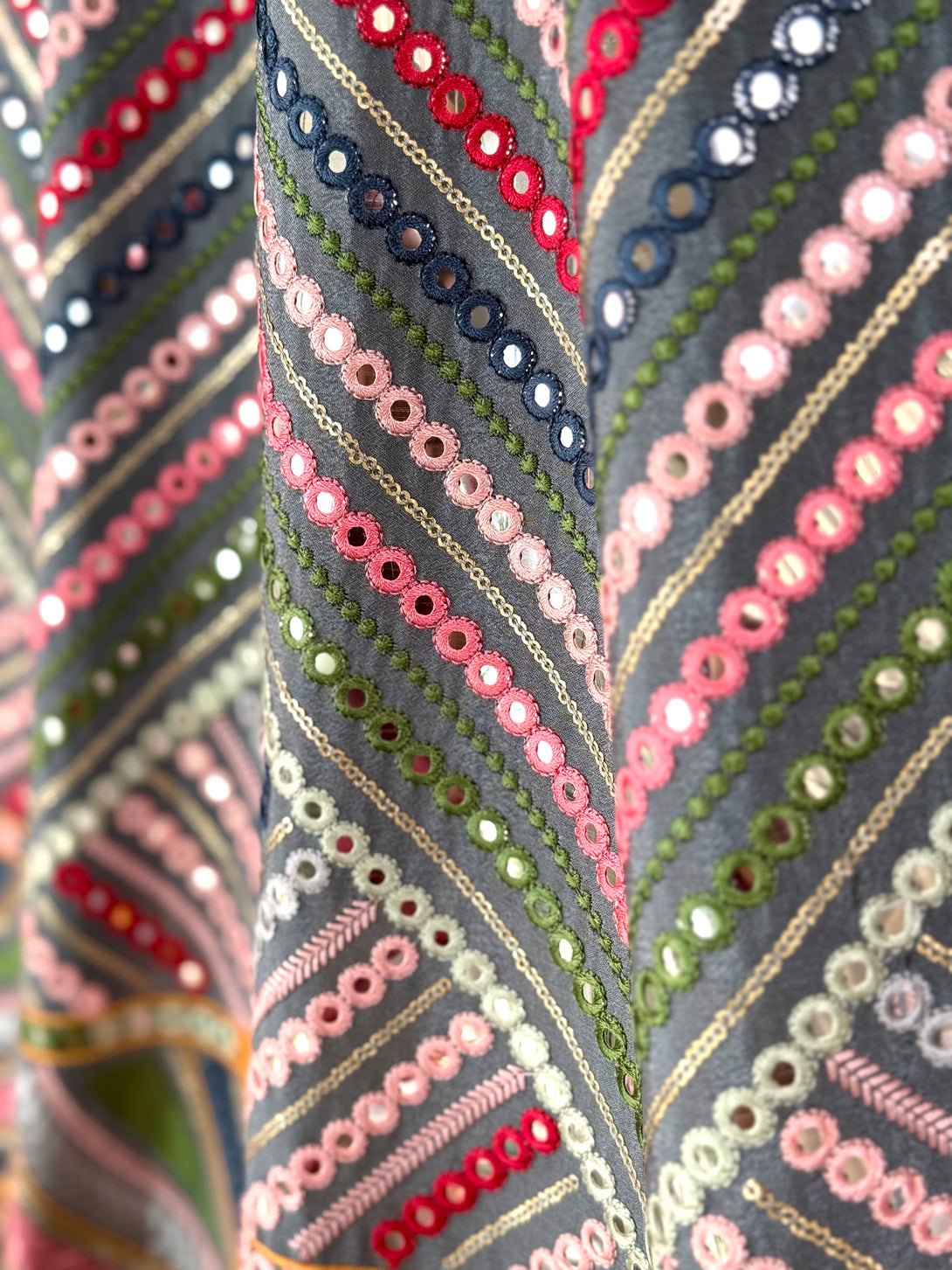 choli : Chinon Fabric With Embroidery Work (unstitch 1Mtr)