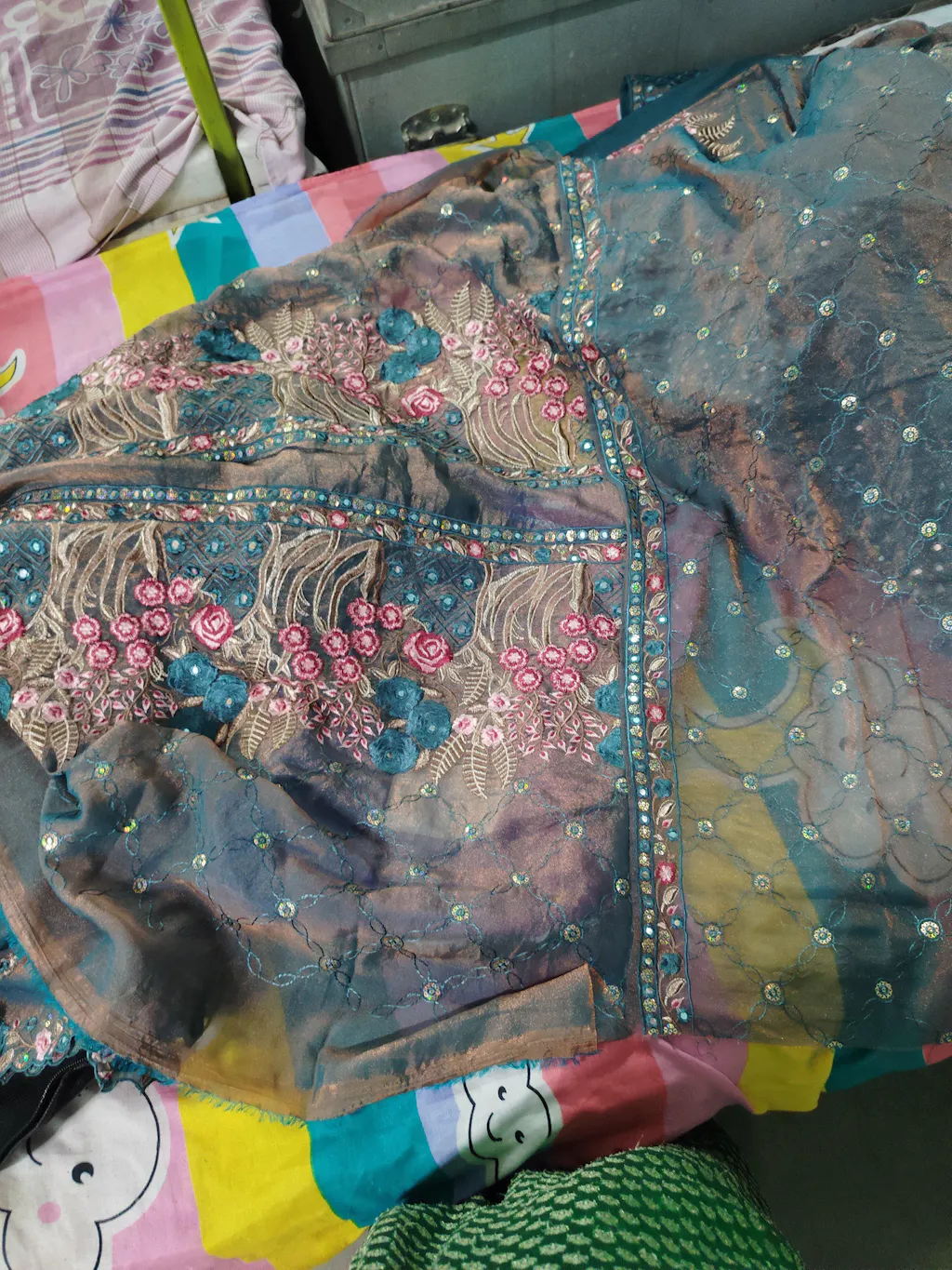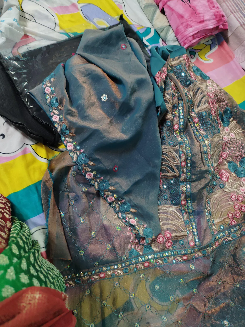 choli : Fendy Satin Fabric With Sequence Embroidery Lace Work (unstitch 1Mtr)