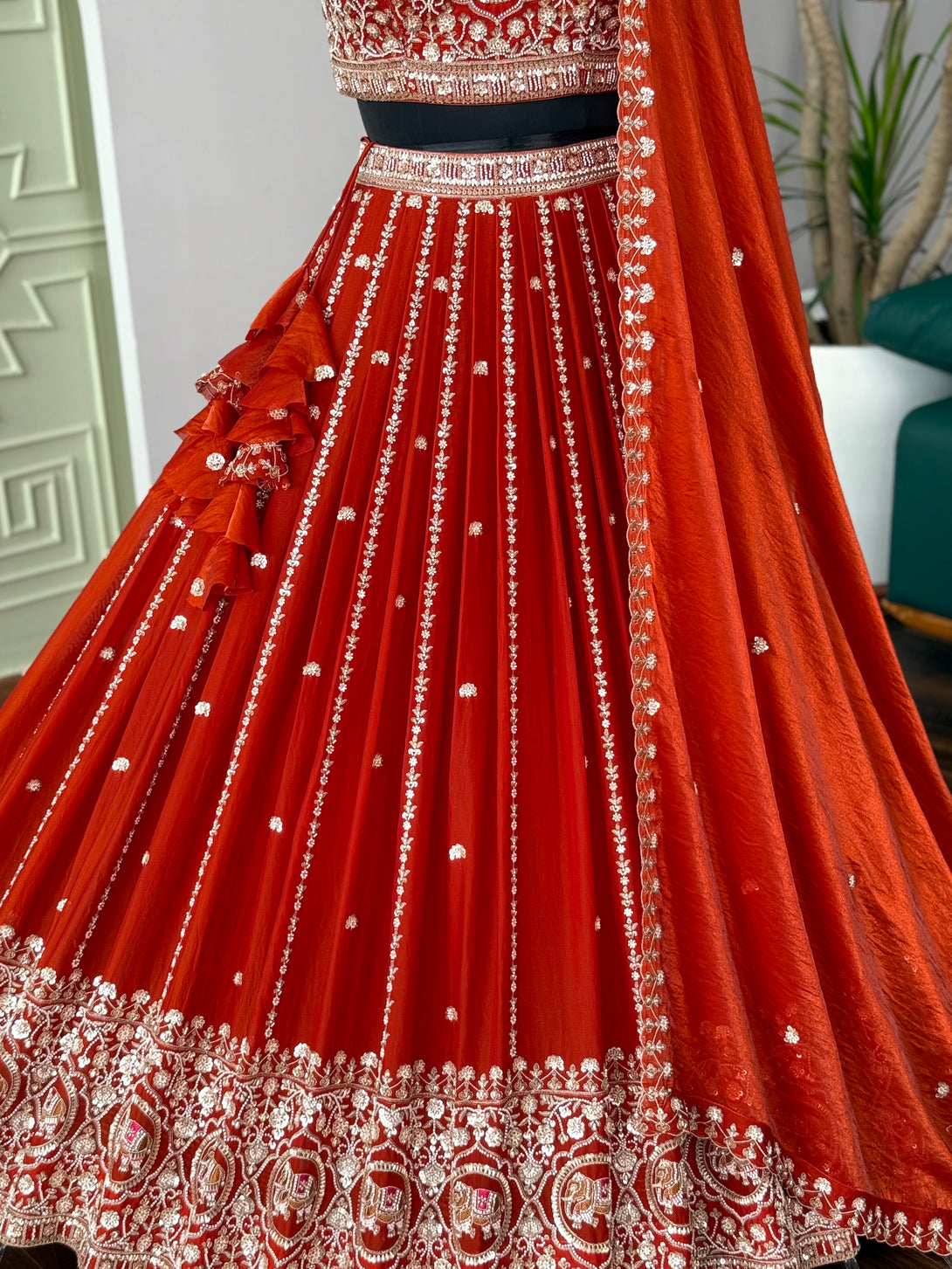 Orange color Hand Embroidery work Designer Lehenga Choli for Wedding Function BL1623