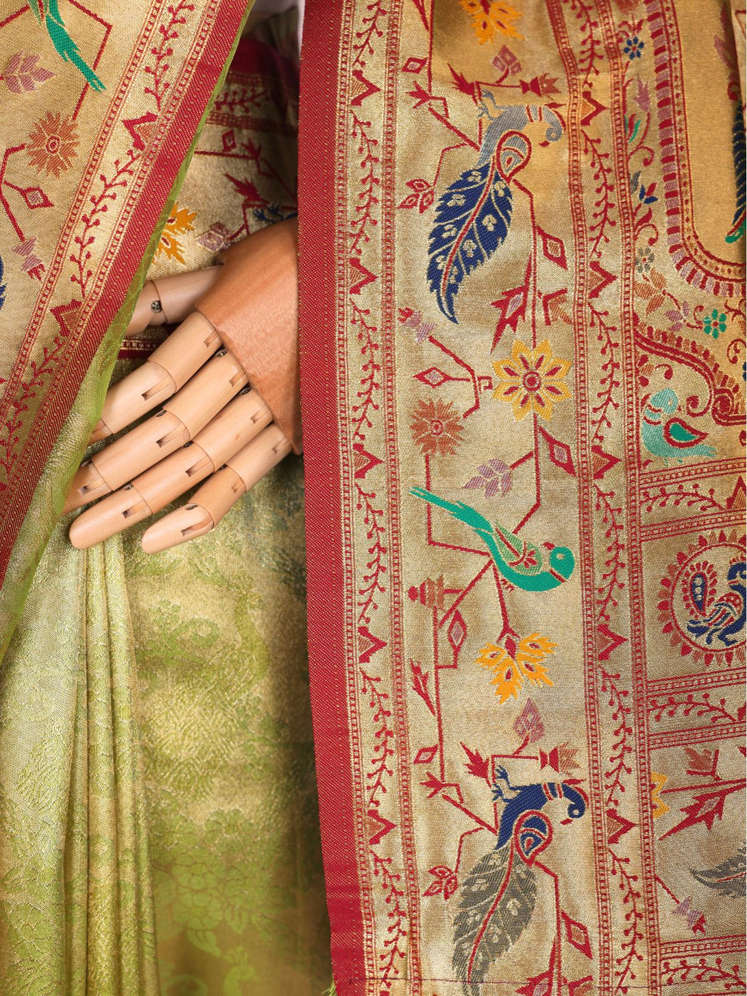 Saree : Tisue Silk Paithani silk Woven Zari Work Traditional Tassel Saree (5.5 Metre)