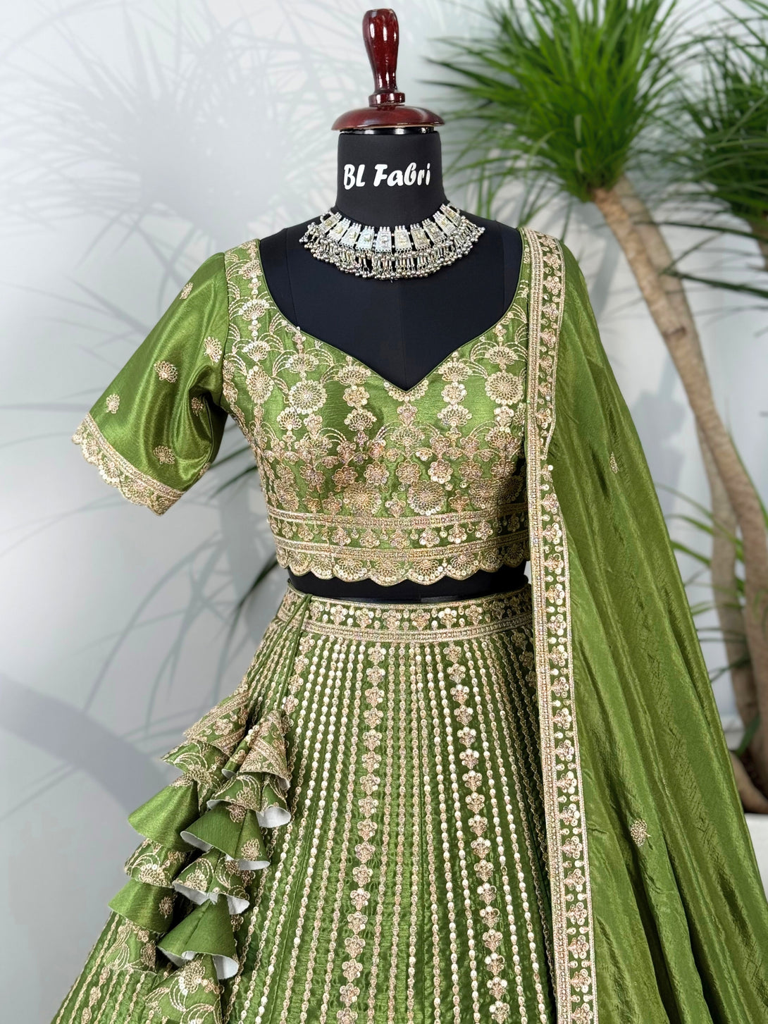 Parrot Green color Sequence Embroidery work Designer Lehenga Choli BL1611