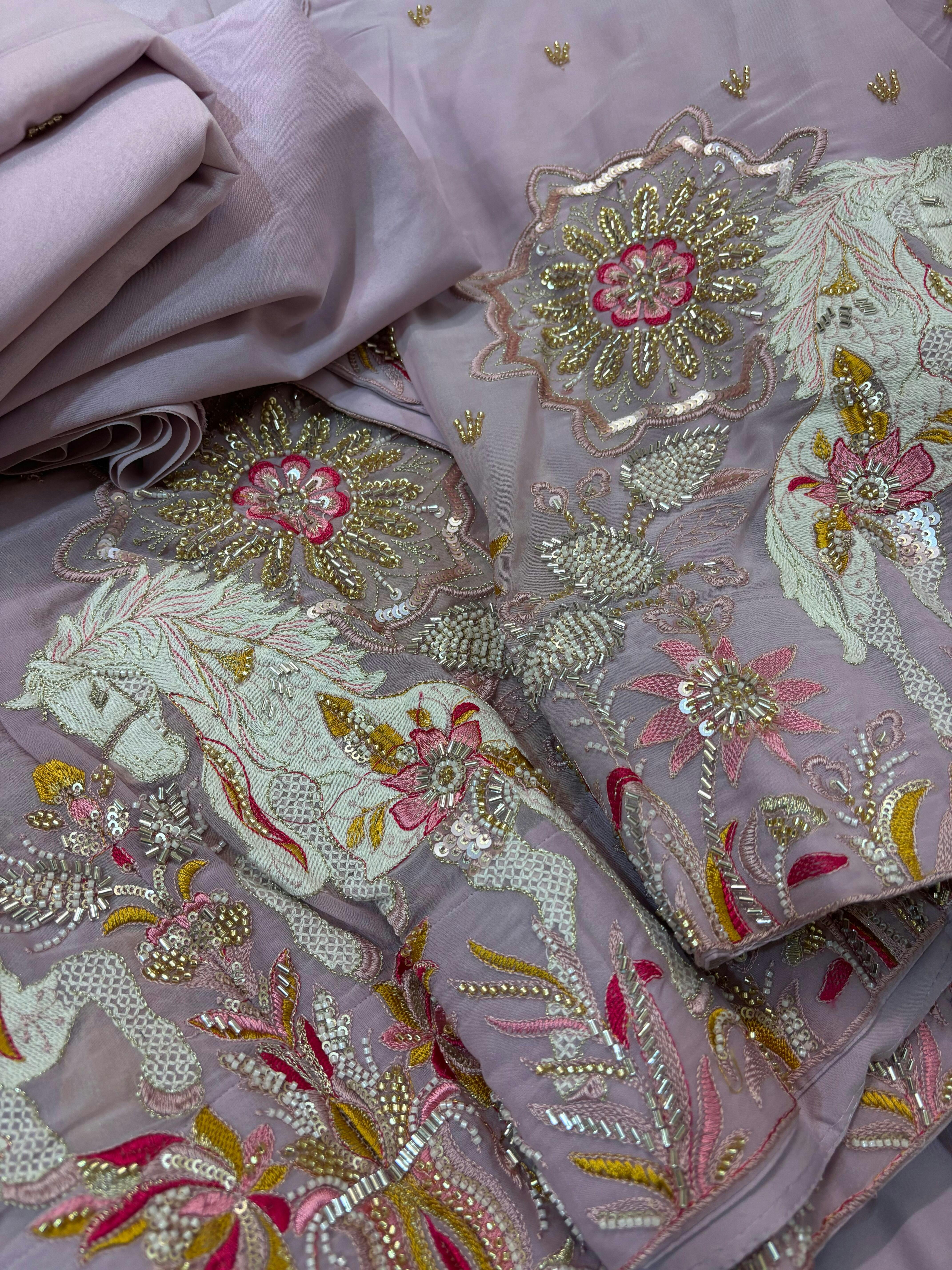 Light Pink color Hand Embroidery machine work Designer Lehenga Choli for Wedding Function BL1603