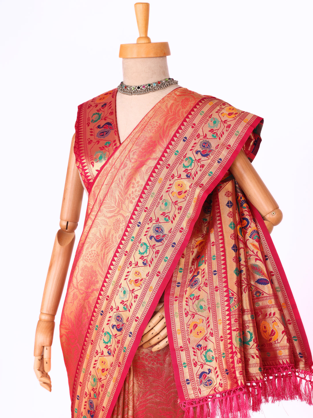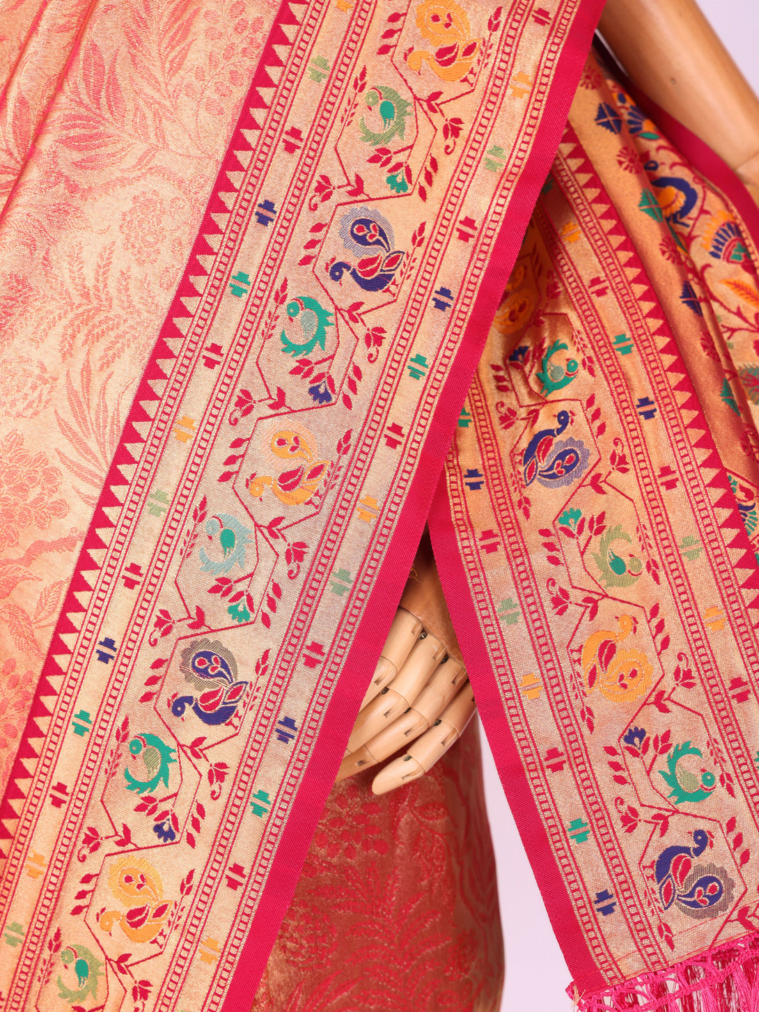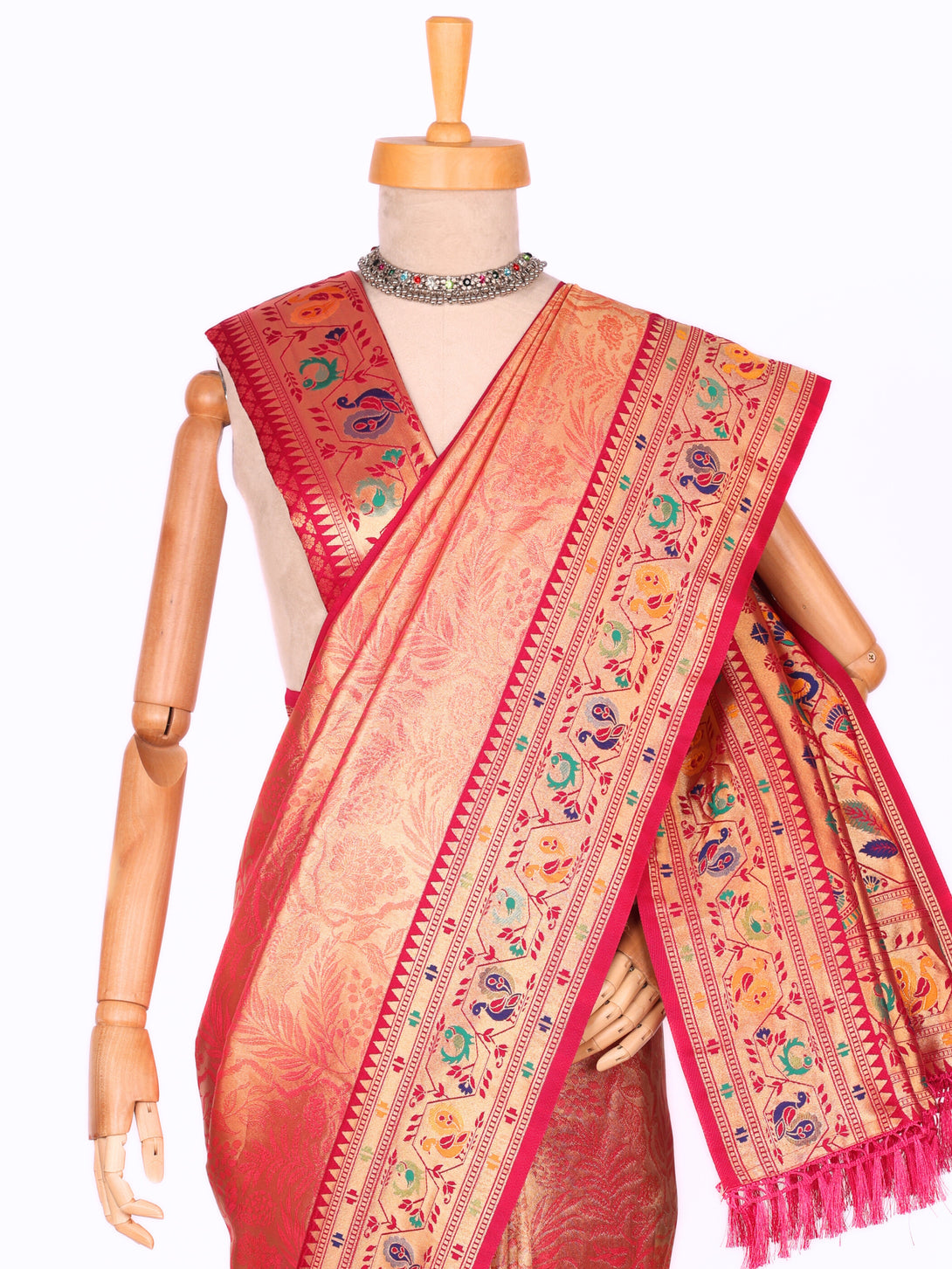 Saree : Tisue Silk Paithani silk Woven Zari Work Traditional Tassel Saree (5.5 Metre)