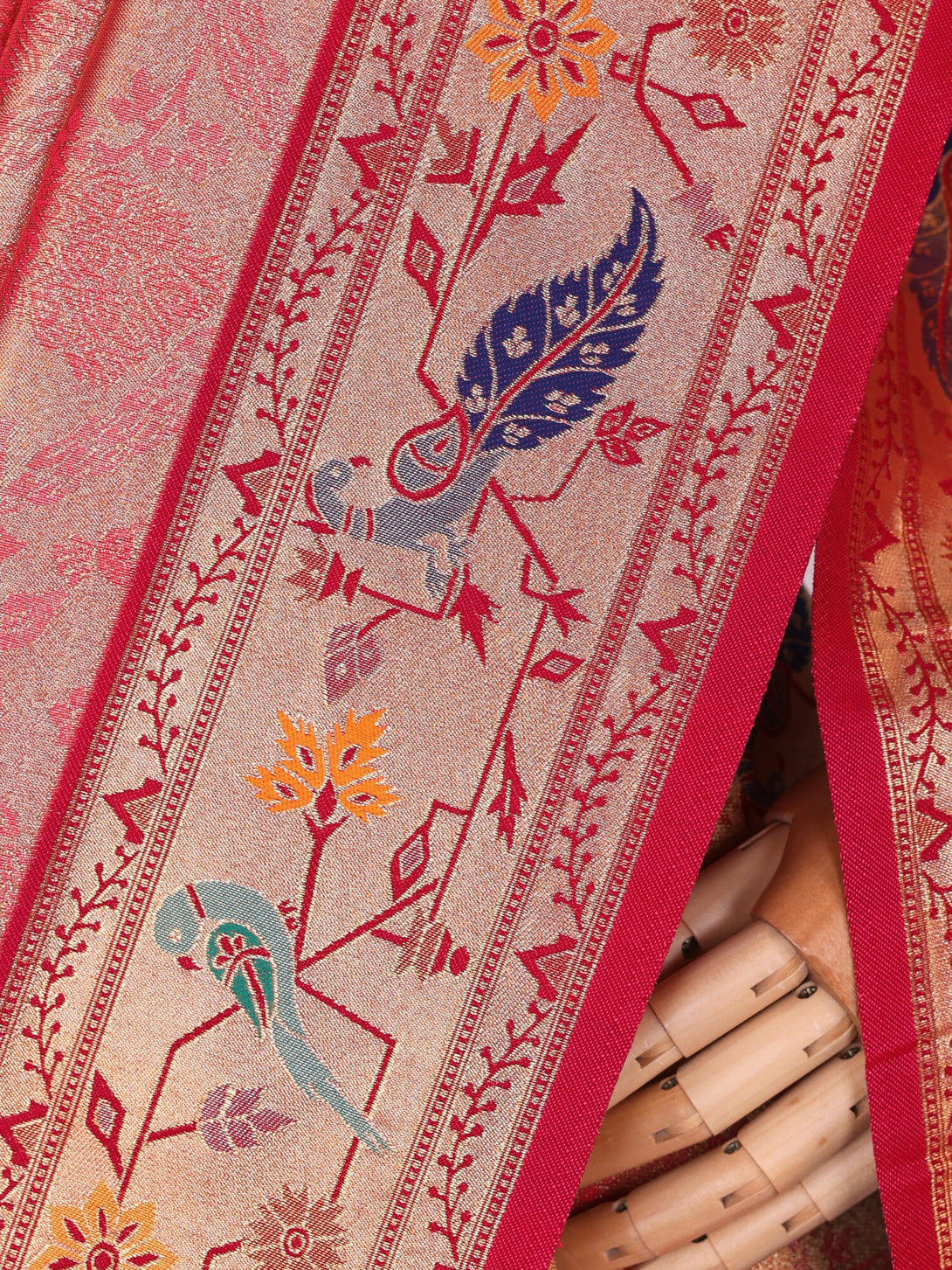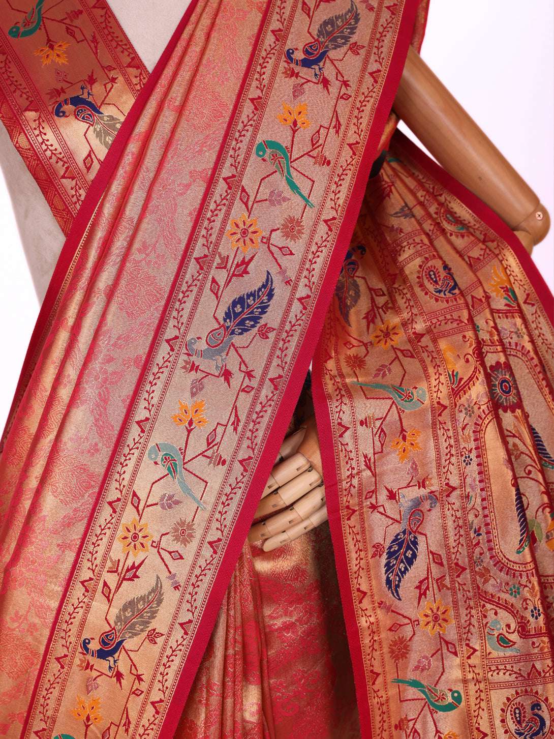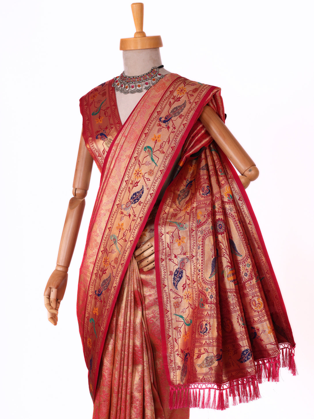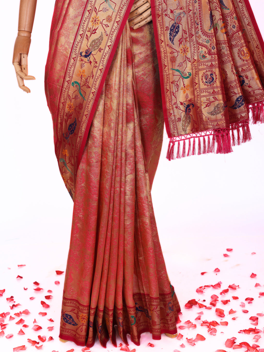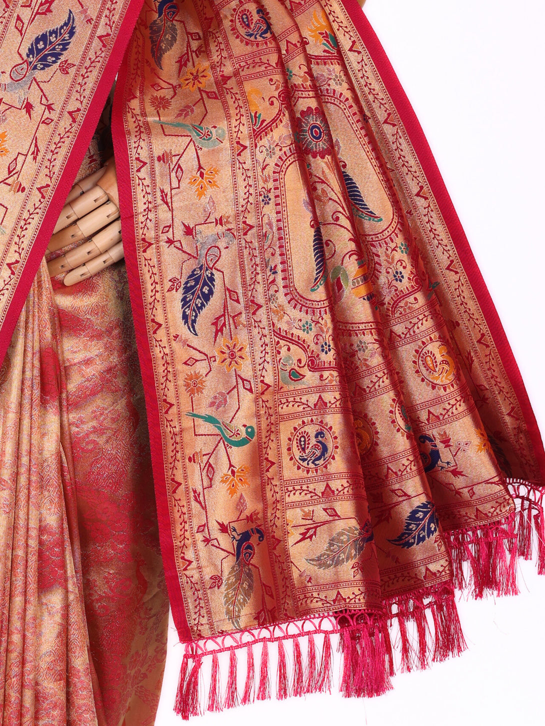 Saree : Tisue Silk Paithani silk Woven Zari Work Traditional Tassel Saree (5.5 Metre)