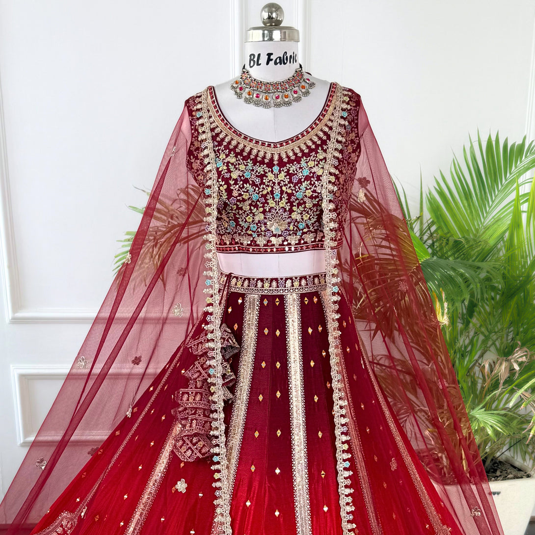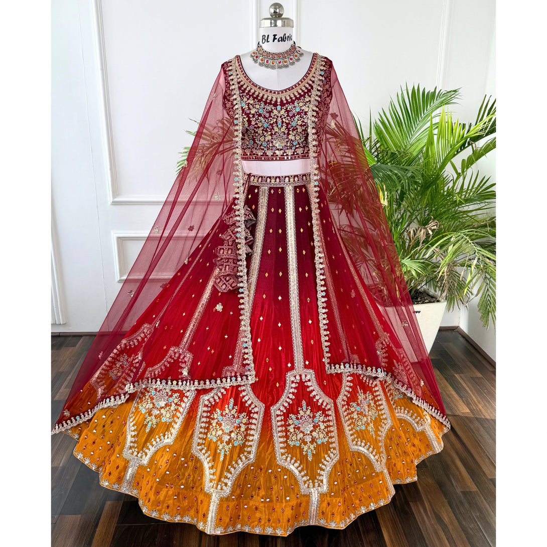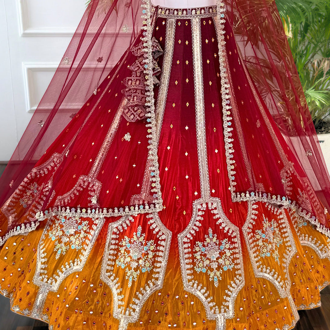 Shadding Red Orange color Sequence Embroidery work Designer Lehenga Choli for Wedding Function BL1577