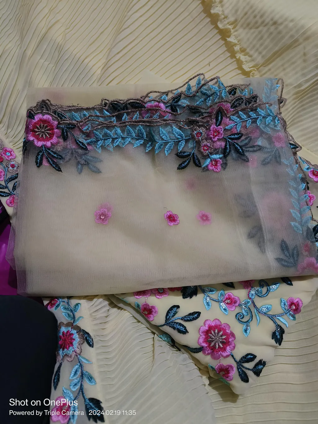 Duppta : Net Fabric with Embroidery Lace Border ( 2.25 Metre)