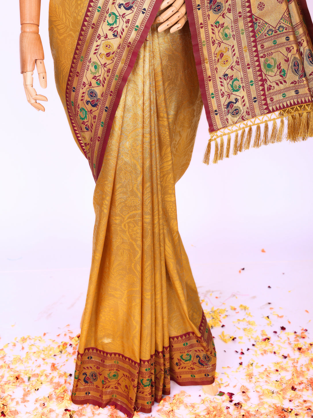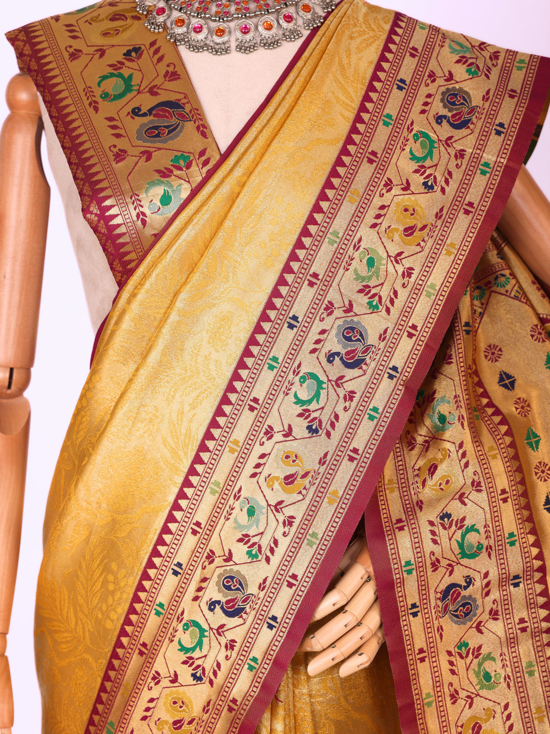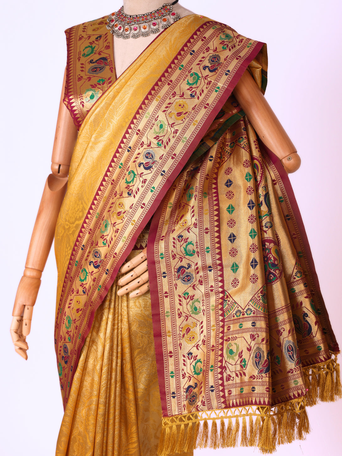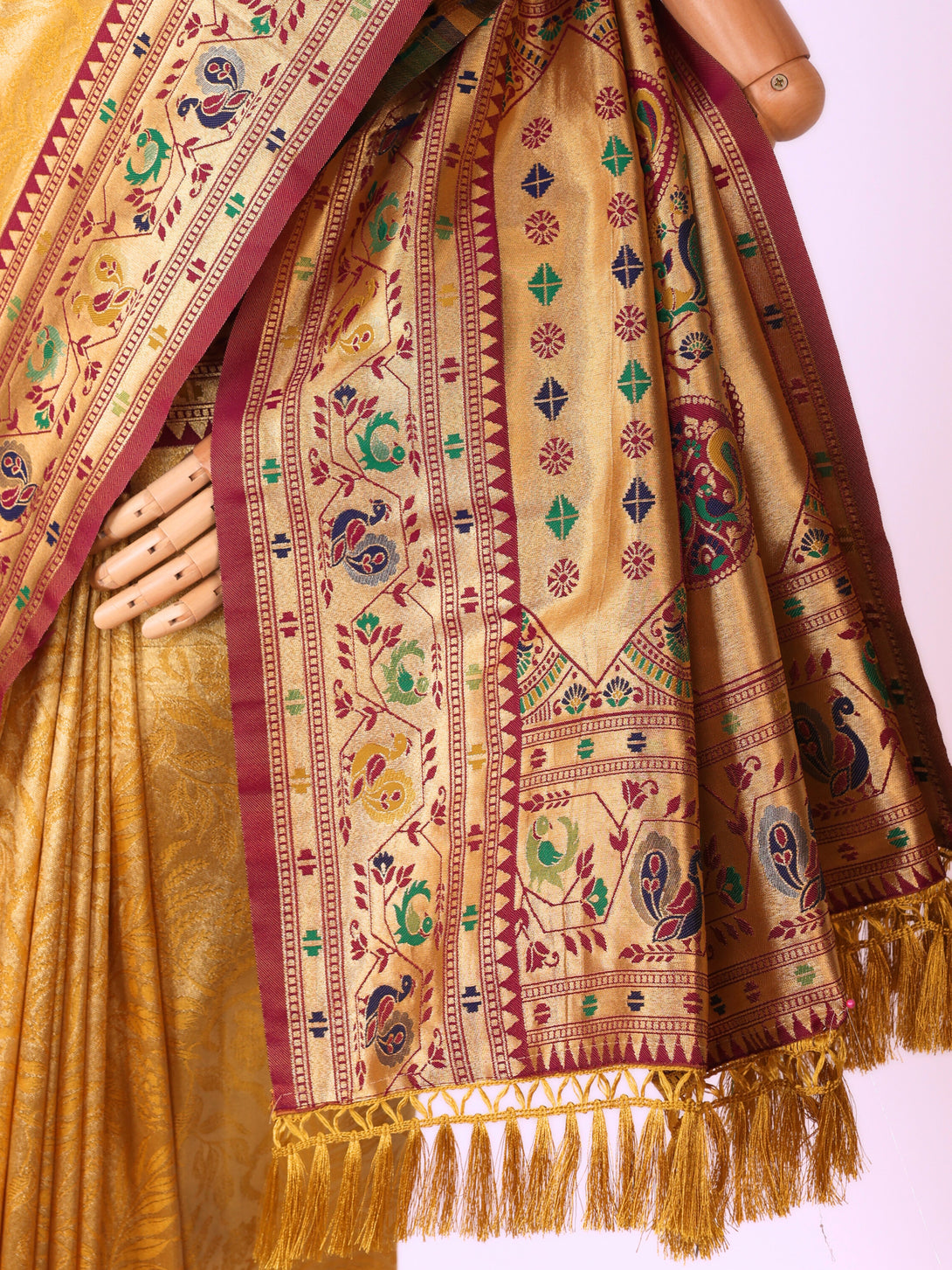 Saree : Tisue Silk Paithani silk Woven Zari Work Traditional Tassel Saree (5.5 Metre)